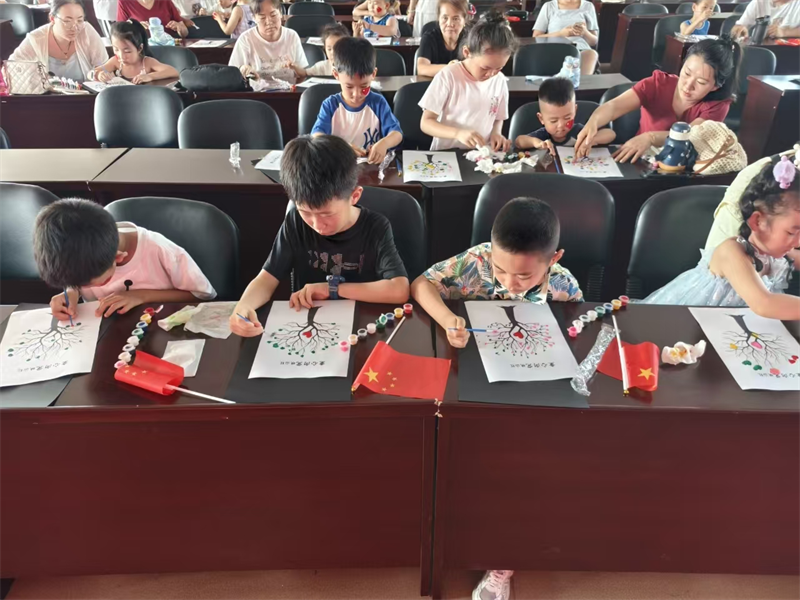 活动最后,孩子们用画笔描绘心中的美好愿景。天安门、五星红旗、火箭飞船等元素跃然纸上,构成了一幅幅充满童真又饱含深情的画作。这些作品将在图书馆进行为期一周的展示。