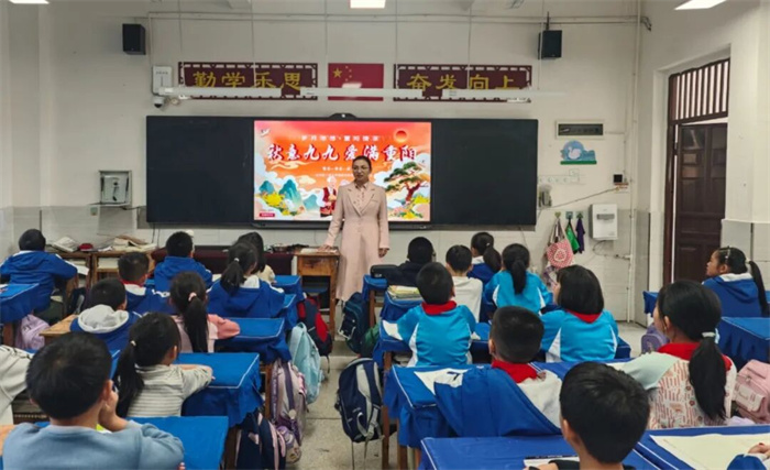 班会课上,各班辅导员化身“传统文化讲解员”,通过生动的图片、有趣的故事,向孩子们详细讲解了重阳节的来历、习俗与文化内涵。从古代重阳节登高望远、插茱萸的习俗,到如今陪伴长辈的传统延续,辅导员们将厚重的文化知识转化为孩子们易于理解的语言。