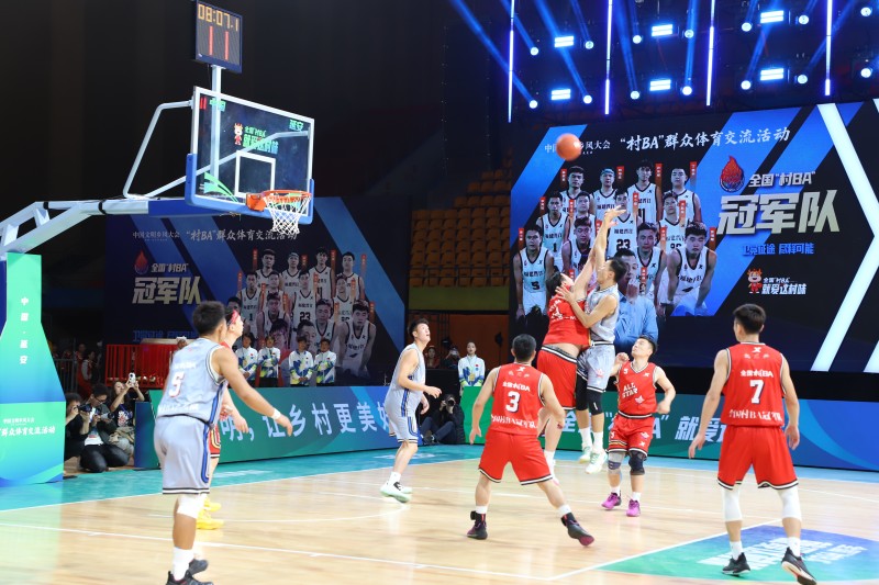 作为中国文明乡风大会的重要内容,本次活动由2025年全国“村BA”冠军福建晋江队对阵“村BA”民星队。巩晓彬、郑海霞、焦健等篮球名家现场指导助阵,活动现场气氛热烈,吸引3000余名观众到场观赛。